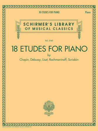 Schirmer's Library of Musical Classics Volume 2143 A collection of some of the most popular etudes for piano. Chopin, Debussy, Liszt, Rachmaninoff,...