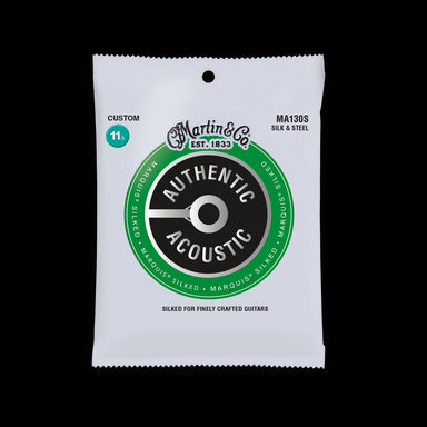 Martin® Authentic Acoustic® Marquis® Silked strings feature a soft silk wrap that prevents wear and tear on the bridge holes and bridge plate as yo...