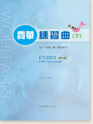 費華為德國萊比錫小提琴教師,六十首練習曲提供小提琴學習者良好的初步教材,Wohlfahrt Etudes Op. 45 for the Violin 練習曲可使學習者熟練精通技巧,進而掌握樂曲。由樂易小提琴教程的作者張家禎老師編訂,47~60首,第一到五把位,加大音符版。