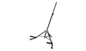 The amp stand can hold monitors, amps or other equipment to a max. weight of 35 kg without a problem. The angled front legs have significantly improved the stand's stability and strength. The low centre of gravity ensures even larger amps are securely displayed. The fine adjustment on the supporting leg allows a tilt between 15° and 28°. A microphone can be attached to the telescopic tube using a boom arm with a thread of either 3/8" or 5/8". Folds compactly.