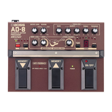 MODELS SIX OF THE WORLD’S FINEST ACOUSTICS! The BOSS AD-8 Acoustic Guitar Processor uses COSM modeling technology to transform the piezo pickup sou...