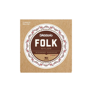 EJ34 Folk Nylon strings feature 80/20 bronze basses, black nylon trebles, and D'Addario ball ends to accommodate a variety of guitars and string ch...