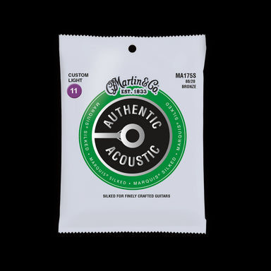 Martin® Authentic Acoustic® Marquis® Silked strings feature a soft silk wrap that prevents wear and tear on the bridge holes and bridge plate as yo...