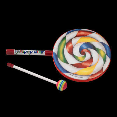 The Kids Percussion® Lollipop Drum® is an easy to play frame drum shaped like a lollipop and features a pre-tuned graphic drumhead with a warm, res...