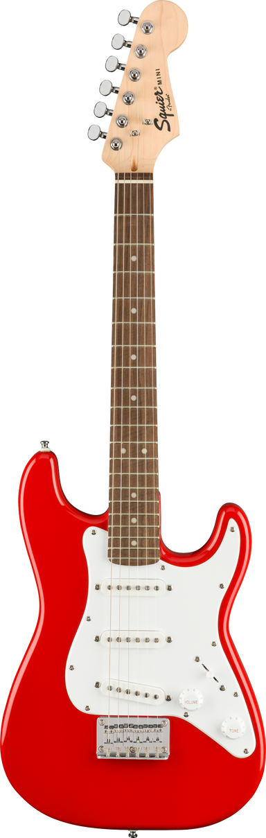 The Squier Mini Stratocaster® is the perfect companion for players seeking a reduced-size instrument with classic styling and familiar Fender® tone. Highlights include a thin and lightweight body, an easy-to-play “C”-shaped neck profile, a trio of Squier single-coil pickups with 5-way switching for sonic variety, and a hardtail bridge for solid tuning stability.