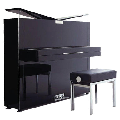閃亮的音質,爽快的演奏。用極其貴重的鳥眼松木和金屬製品組合,黑色拋光的琴身加上黃銅的點綴,皮質的琴譜架,兼有SAUTER雙重複振動能擊弦機(SAUTER Double Repetition Action)。
