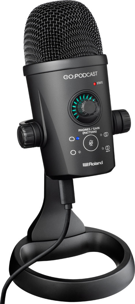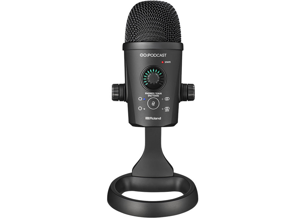 Even if your video looks great, viewers will quickly tune out if the audio is subpar. The GO:PODCAST microphone features a full-range condenser design, allowing you to capture voices and other sources with clear, warm, and articulate sound. There’s a convenient dual-function volume knob for the mic and headphone jack, plus an audio meter for setting optimum levels. The built-in stand provides easy desk positioning and a stable, isolated platform that helps keep the sound free of low-frequency rumble.