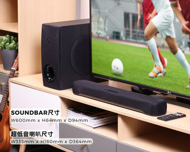 Soundbar(一體式音響系統)是一種優化聲音品質的揚聲器,通常放置在電視的下方或上方,為你帶來更佳的影音體驗。Soundbar通常都由多個揚聲器組成,藉此產生環繞音響的效果,配合高清的電視機,讓你能沉浸於視覺和聽覺的絕佳享受之中。