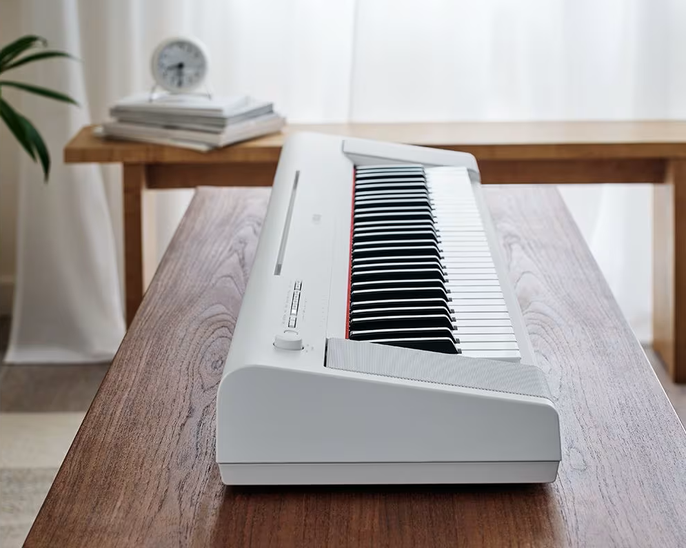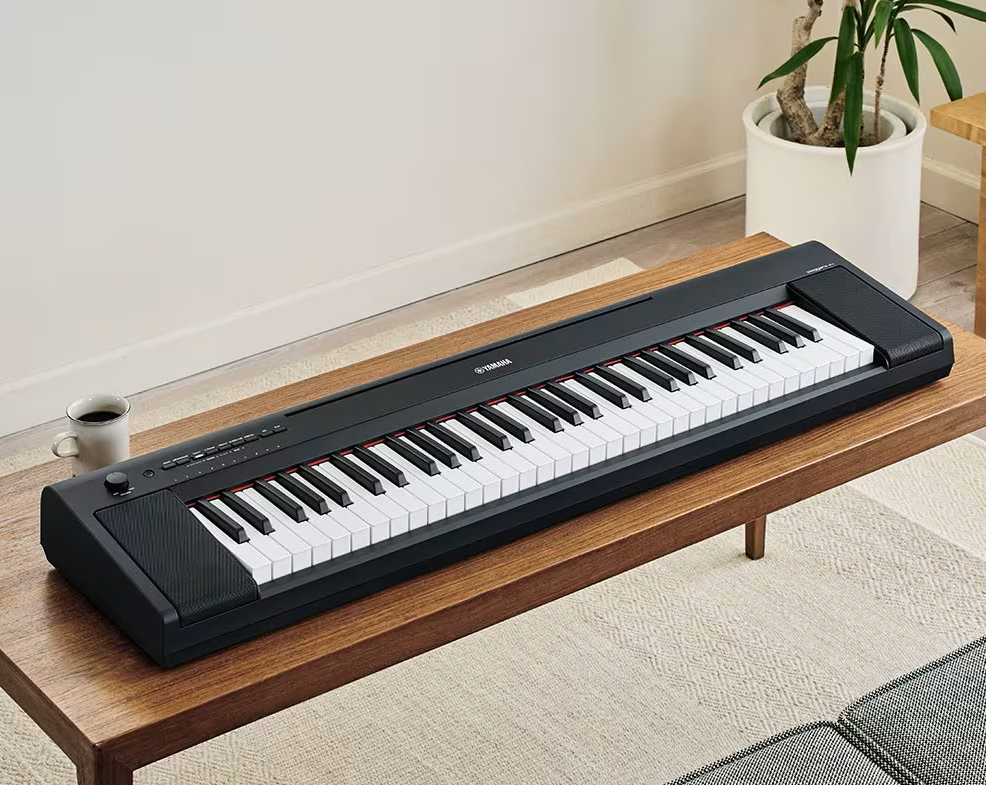 61 鍵的鍵盤(傳統鋼琴有 88 鍵)非常適合演奏流行曲目或簡單的古典樂曲。琴鍵形狀如同鋼琴一般,但手感較輕,讓初學者能夠輕鬆上手。演奏時可搭配耳機使用,避免打擾到周圍的人。