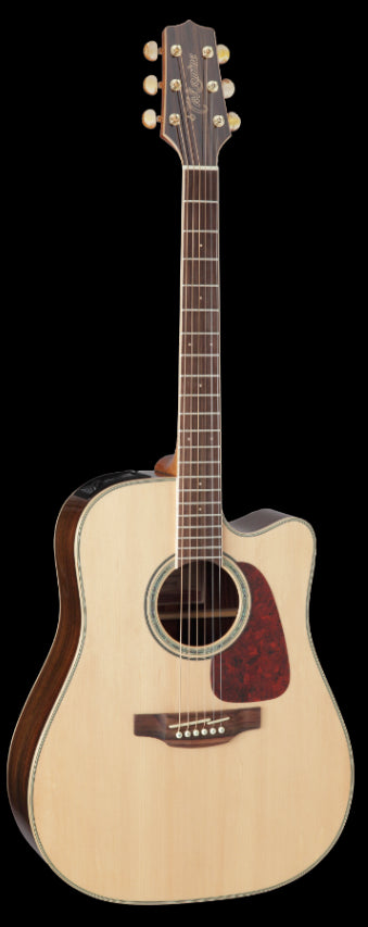 With deluxe appointments, solid-top construction and great performance features including a Venetian-style cutaway and Takamine electronics system...