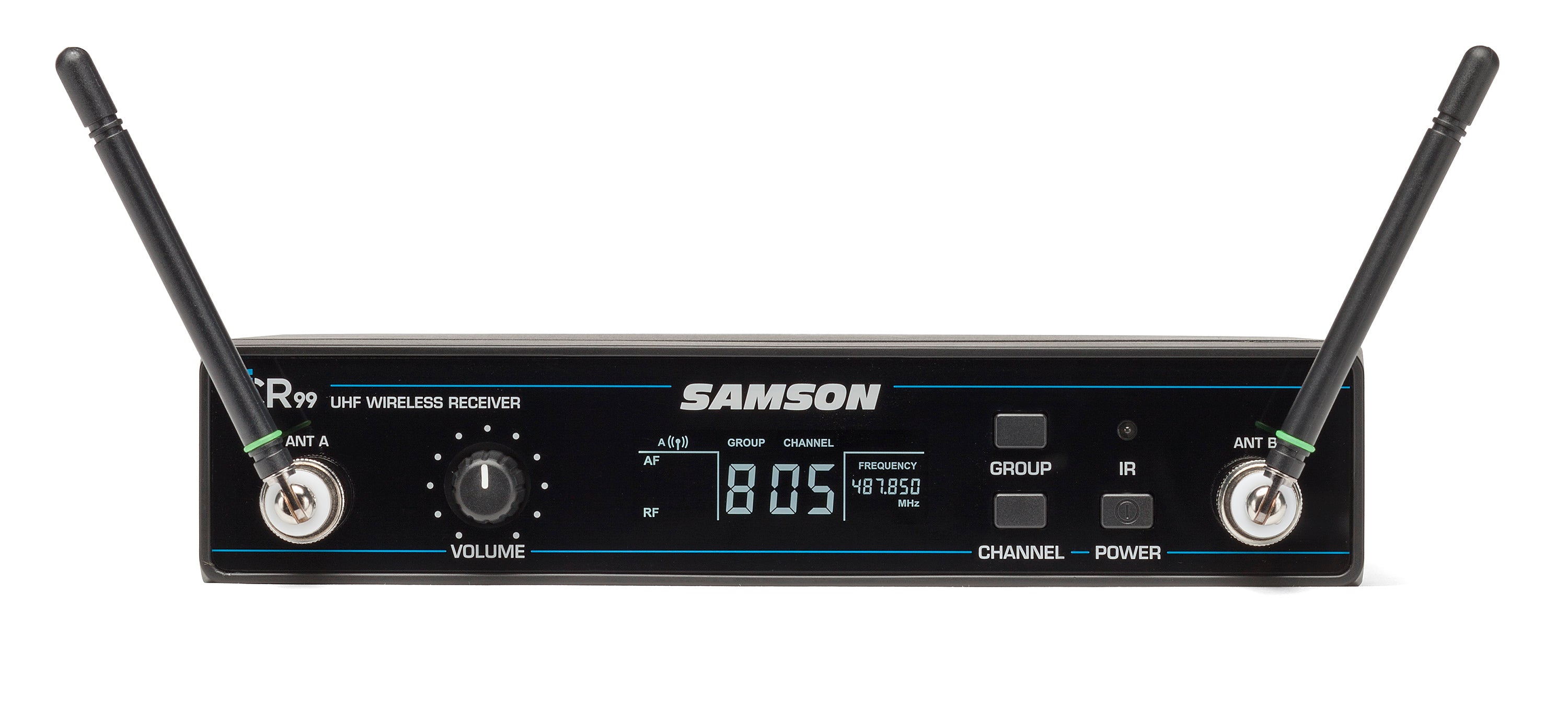 Samson's Concert 99 Handheld combines 80 channels of high-definition audio and extreme reliability into a rugged all-metal, rack-mountable chassis with a stage-ready backlit display. With simple 1-touch setup, convenient monitoring, a 300' UHF operating range and impressive transmitter battery life, this frequency-agile system offers unprecedented value to singers, business professionals, educators and others in search of reliable wireless freedom.