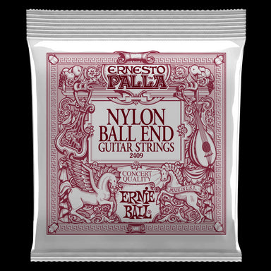 Ernie Ball Ernesto Palla concert quality classical guitar treble strings are made of black nylon monofilament. Gold wound basses are made of 80/20 ...