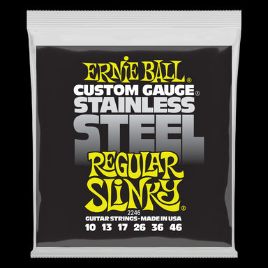 Ernie Ball Slinky Stainless Steel Wound Electric Guitar Strings are made from stainless steel wire wrapped around tin plated, hex shaped, steel cor...