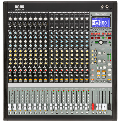 Korg has collaborated with the legendary mixer design team of Greg Mackie and Peter Watts to create hybrid/analog mixing consoles that make creative mixing easy. Both the 24- and 16-channel models give you instant analog control for live mixing with stunning sound quality and more musician-friendly features than the competition — paired with the power of high-quality digital where it counts.