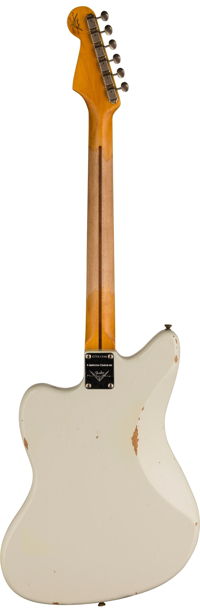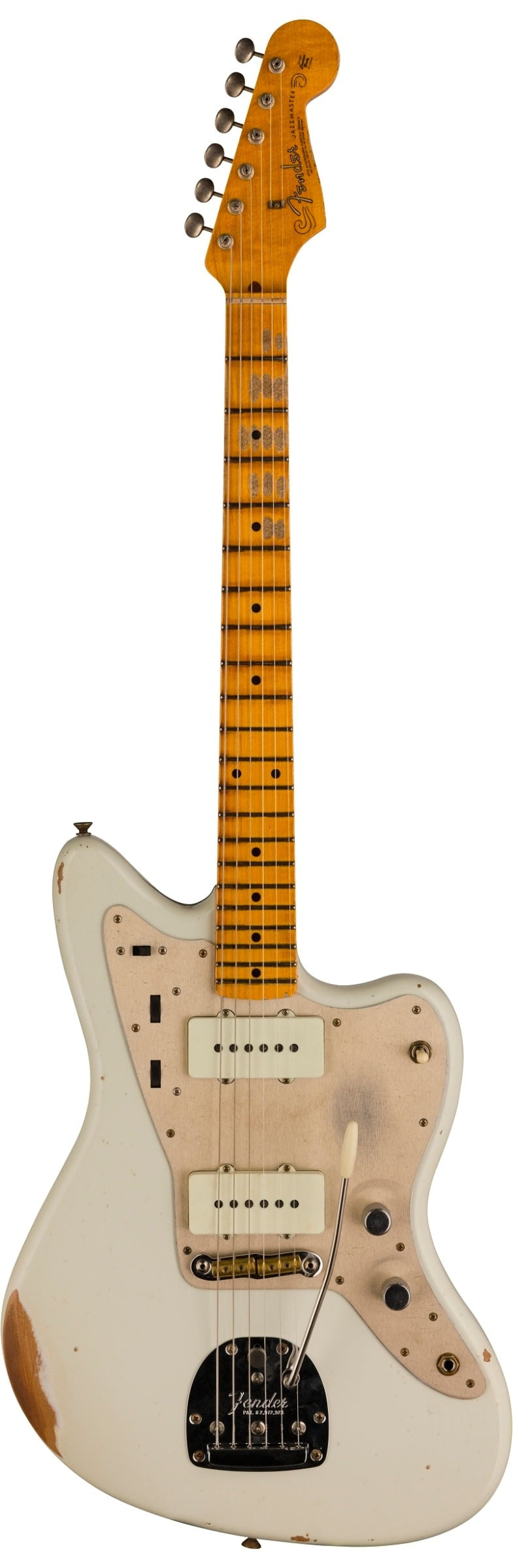 | Relic® Lacquer Finish; 2-Piece Select Alder Body; 1-Piece Rift Sawn Maple Neck with 11/56 Off Center "V" Back-Shape; 7.25" to 9.5" Vintage Compound Radius; 21 Medium Vintage (47095) Frets; Custom Shop Hand-Wound Vintage Jazzmaster Pickups; Modified Jazzmaster Wiring with 250K Volume & Tone Pots; 3-Way Switch; Gold Anodized Aluminum Pickguard; Vintage-Style "Floating" Tremolo and RSD J-Bridge; Vintage-Style Tuning Machines; Bone Nut; Wing String Tree; Deluxe Hardshell Case; Strap; Certificate of Authenticity. |