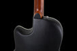 Scale 643 mm, nut width 42.8 mmMulti hardwood epaulettesAbalone-Dot-InlaysIvory coloured body binding, multi-part purflingDiecast Ovation machine head, chromeOvation CP-100 Slimline Pickup, OP-4CT Preamp with tuner