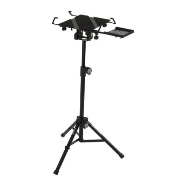Free-standing tripod laptop holder. All-steel construction. Can accommodate virtually any size laptop. Four stoppers, adjustable in width and dept...