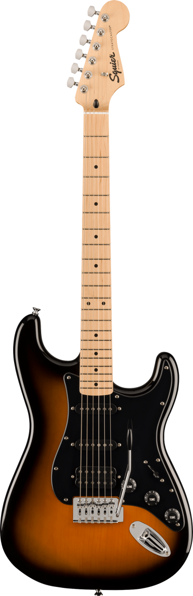 - Squier humbucking bridge pickup, single-coil neck and middle pickups (HSS)