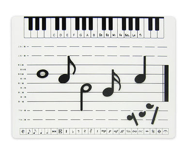 音符豆豆加大,磁鐵加大,高低音五線譜格式,吸力更強:音符、休止符、小節線、升降記號、數字皆有,讓教學更豐富,訓練幼兒是譜好幫手,學生用、自用兩相宜。 磁板材質加厚,較不易變型 印刷加大。