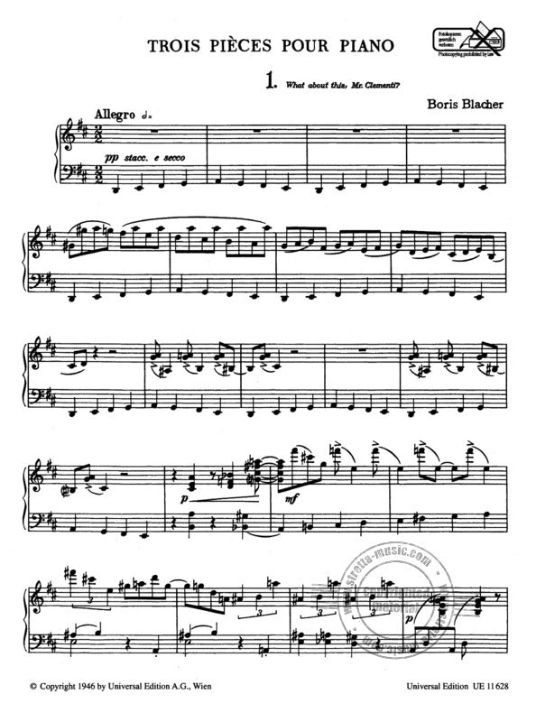 BLACHER BORIS: 3 PIECES FOR PIANO
