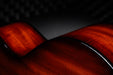 Sporting a stylish Florentine cutaway, this custom 12-fret Grand Concert is a showcase for its back, sides and top of neo-tropical mahogany, specially selected for its striking ribbon figure. It delivers a bold midrange character with a dry, focused quality that emphasizes the fundamental note and minimizes ringing overtones, with improved volume and sustain thanks to the V-Class bracing inside. Visually, this acoustic-electric exudes meticulous artistry, with an appointment package that includes a Split Diamond rosette design with koa frames and abalone fields, Boxed Wave fretboard inlays with abalone waves and koa frames, a mother-of-pearl peghead logo, a smoky ebony peghead veneer, and polished bronze tuning machines with buttons in ebony and koa. This model’s full-body gloss is finished with a hand-sprayed shaded edgeburst to highlight the mahogany’s rich grain. It ships with ES2 electronics, a TaylorSense monitoring unit and a brown deluxe hardshell case.