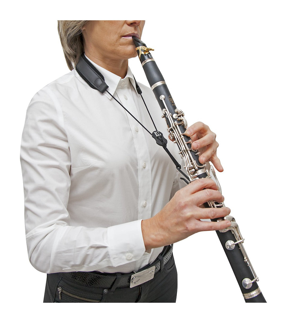 BG's clarinet leather neckstrap is highly flexible and unconfined.