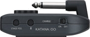 KATANA:GO delivers premium sound for everyday playing without the hassle of amps, pedals, and computer interfaces. Simply plug it in, connect earbuds or headphones, call up a memory, and start rocking. Onboard controls provide access to volume, memory selection, and other essential functions, and you can easily view the current memory and tuner with the built-in display. The rechargeable battery provides up to five hours of continuous playing time, and the integrated 1/4-inch plug folds down to create a pocket-size package that’s ready to travel anywhere.