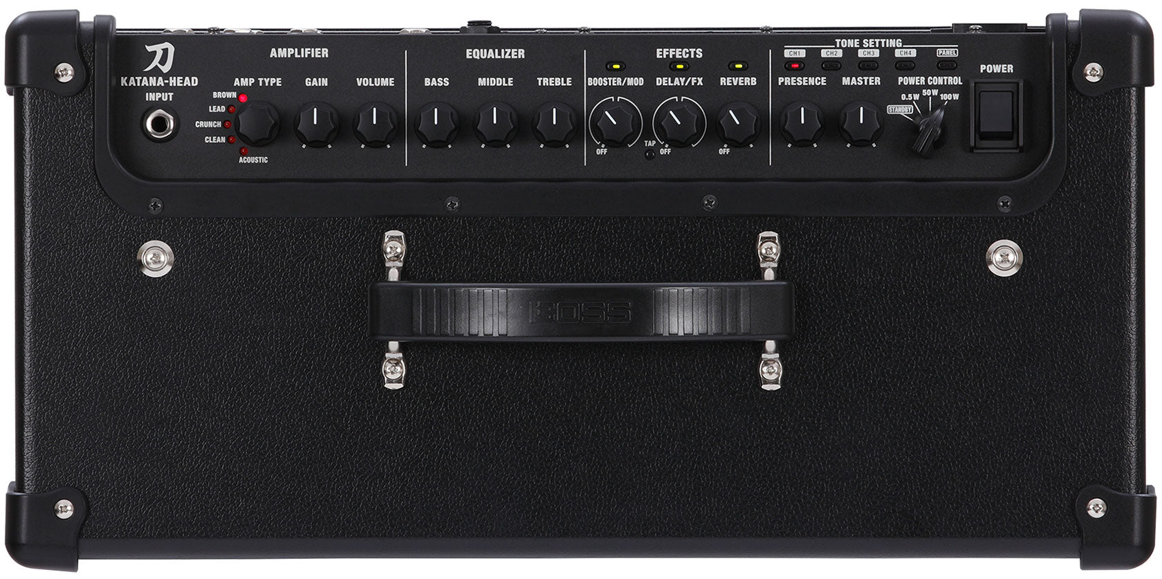 Compact and powerful, the 100-watt Katana-Head delivers sharply defined rock tones with rich, commanding presence. The amp also includes integrated access to a huge range of BOSS effects, which are customizable using the free BOSS Tone Studio editor software. And with the powerful onboard Tone Setting memories, you can store your favorite amp channel setups and effects combinations for instant recall. In addition, the versatile Katana-Head is equipped with an effects loop and MIDI for integration with advanced rigs, and features a convenient built-in monitor speaker for tone preview and practice without a cab.