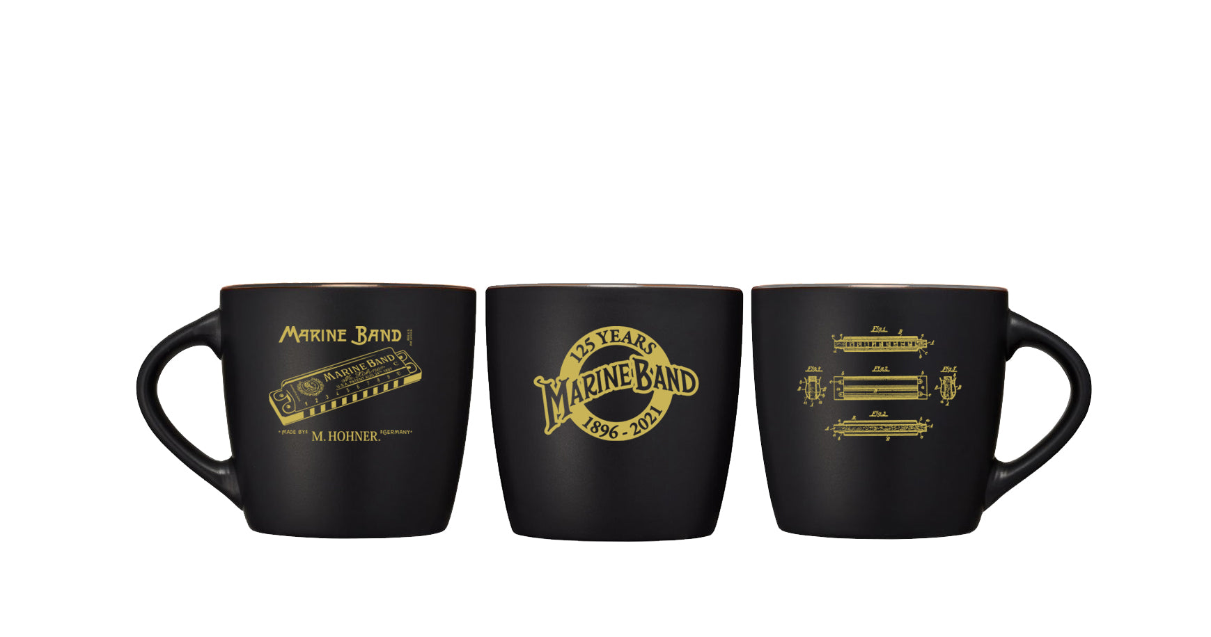 This coffee mug is designed to celebrate the 125th anniversary of the legendary Hohner Marine Band Harmonica