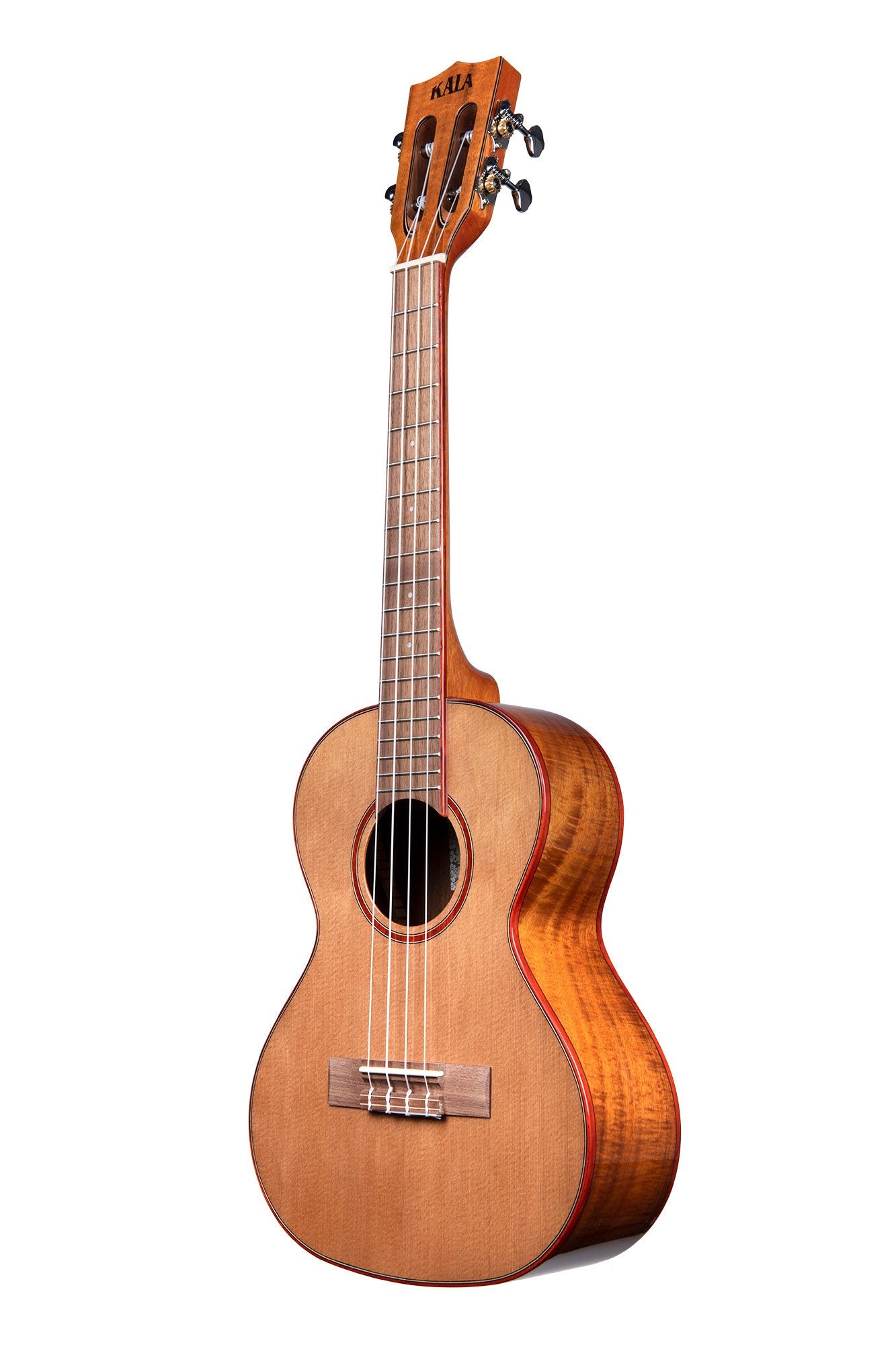 The Solid Cedar Top line features Acacia back and sides with a Padauk rosette and binding. Cedar has gained in popularity due to its soft, lush tone. The Solid Cedar Top lends well to finger style playing.