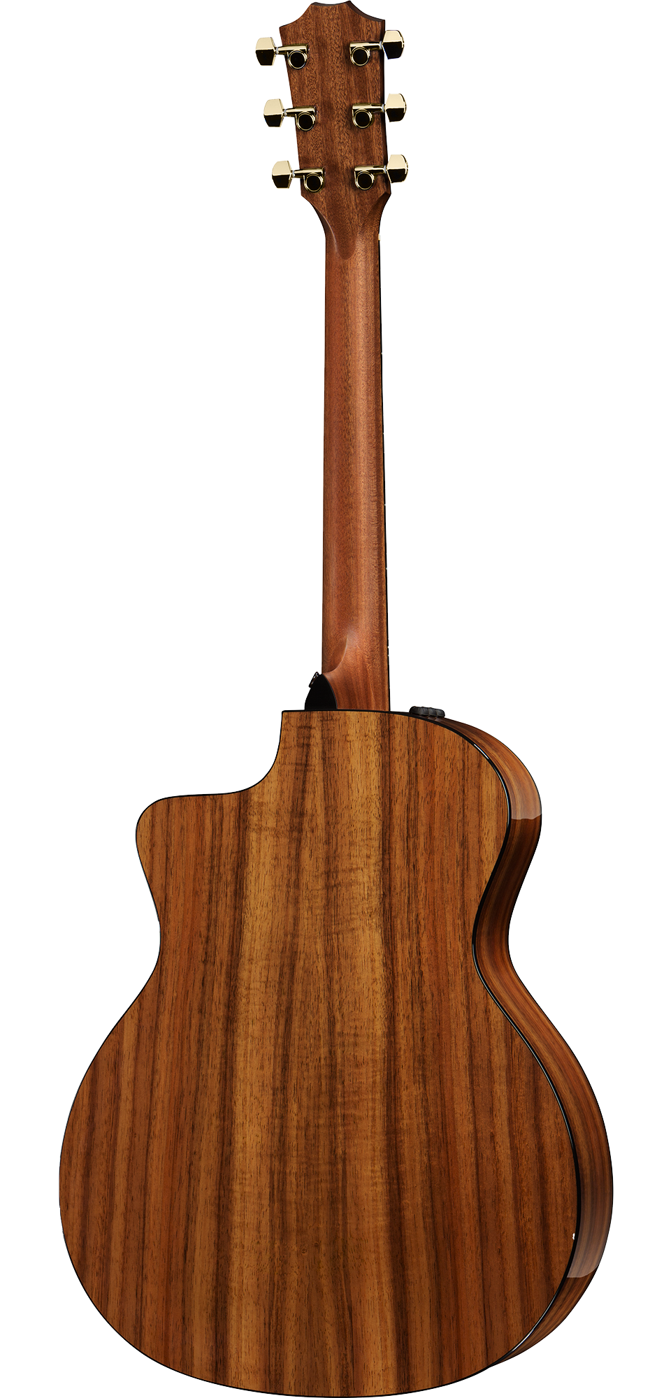 Fans of Hawaiian koa will love the look, feel and sound of this all-koa Grand Auditorium. A shaded edgeburst elevates the vintage appeal of the solid koa top, which is paired with layered koa back and sides, while a gloss finish wraps the body in a rich sheen. The Grand Auditorium’s musical versatility makes this a great all-purpose guitar for both strumming and fingerpicking, and the hardwood koa top will even out a lively attack to produce a focused, linear voice. Player-friendly modern features include a cutaway and Taylor’s ES2 acoustic electronics. Among the distinctive appointments are a single-ring faux pearl rosette in an interlocking “fishbone” pattern, black binding, Italian acrylic small diamond inlays, and chrome tuners. The guitar ships in a Taylor deluxe hardshell case.