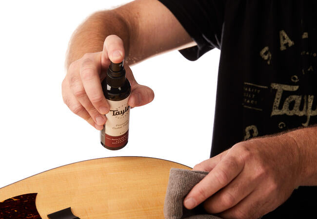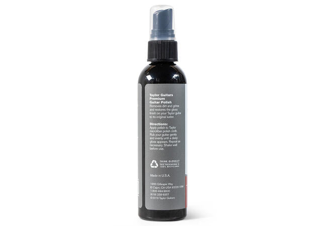 A premium guitar polish for all glossy instruments, Taylor’s unique formula cleans and polishes to a high-gloss finish. Safe for all types of guitar finishes. Made in USA. Model #1308-04