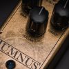 There is one overdrive circuit to this day has been the most talked about, the most sought after, and the most mythical of them all. It’s big, it’s expensive, and it has certainly earned its place at the table. Wampler has painstakingly and faithfully reproduced that magical tone in all its glory in an unbelievably small package, and its name is Tumnus. Tumnus is a versatile addition to any setup, any style. Stack it with another pedal to help push or shape the total amount of gain, use it as a stand alone overdrive, or use it as a slightly dirty boost to push the front end of your amp over the edge. You can even use it as a buffer, because just like the original this pedal is not true bypass. Instead, faithful to the original, this pedal contains a buffered bypass tone legendary in its own right. The Tumnus’ streamlined 3 control knobs (Volume, Gain, and Treble) allow you to quickly dial in your tones no matter what the gig calls for. We aren’t going to sit here and claim it has magical parts, or we sourced out 60 year old diodes that make it perfect, but we are going to say that during our research we looked at everything available and then only used the parts that Brian chose to replicate that amazing tone. Let’s face it, not everyone has room for a four-legged beast on their board. This smaller version slips in and out of a myriad of tight situations. Now you can have the tone. Now you can have history. Now you can have it all without having to sell your prized gear possessions. The Wampler Tumnus, standing up for that amazing tone, but without the outrageous claims often associated with it.