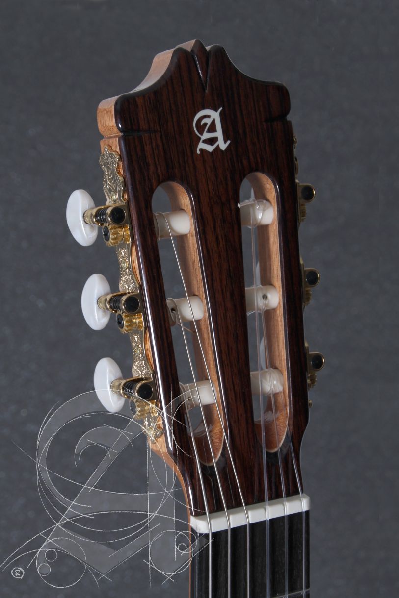 For the neck of the 7 P Classic model, Alhambra has chosen Mahogany, also known as African Mahogany, in this case with an ebony reinforcement that is hidden at a glance.