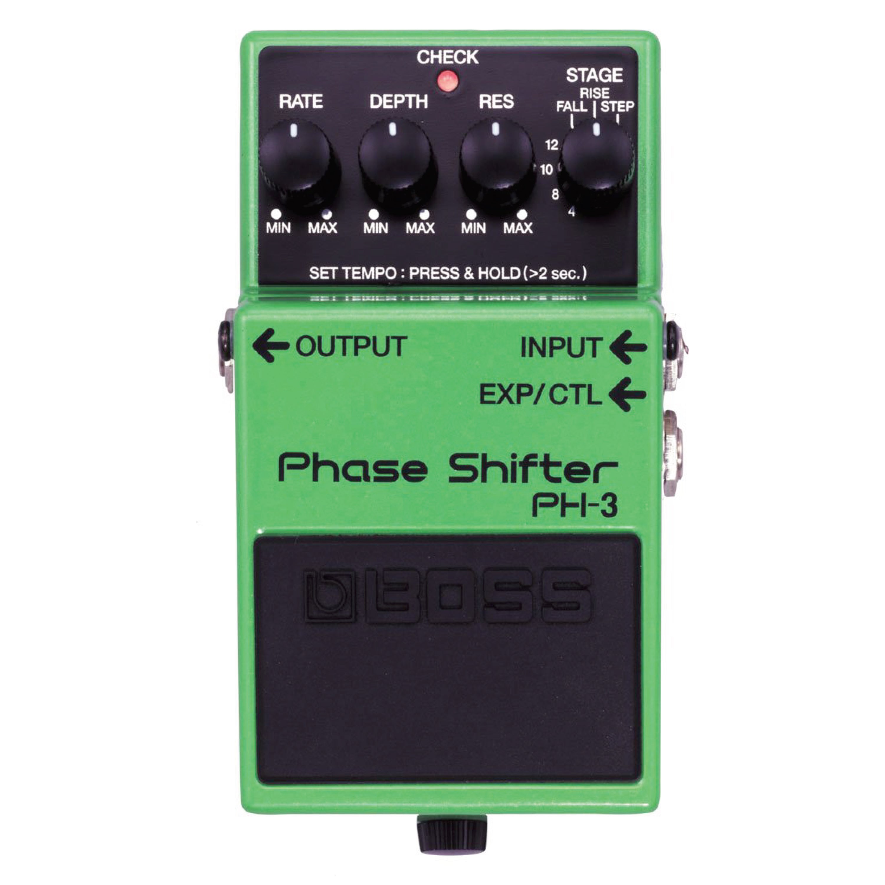 The BOSS PH-3 Phase Shifter pedal provides a wealth of vintage and modern phasing effects, including new "Rise" and "Fall" modes for unique, unidirectional phasing. Syncing these phasing effects is as simple as tapping the pedal to the desired tempo, while an optional expression pedal provides realtime control of the PH-3's Rate, Filter and Tempo.