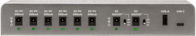 - 8 ground isolated outputs - 6 outlets fixed 9Vdc at 500mA and 2 outlets with switchable voltage (9v/12v/18v)