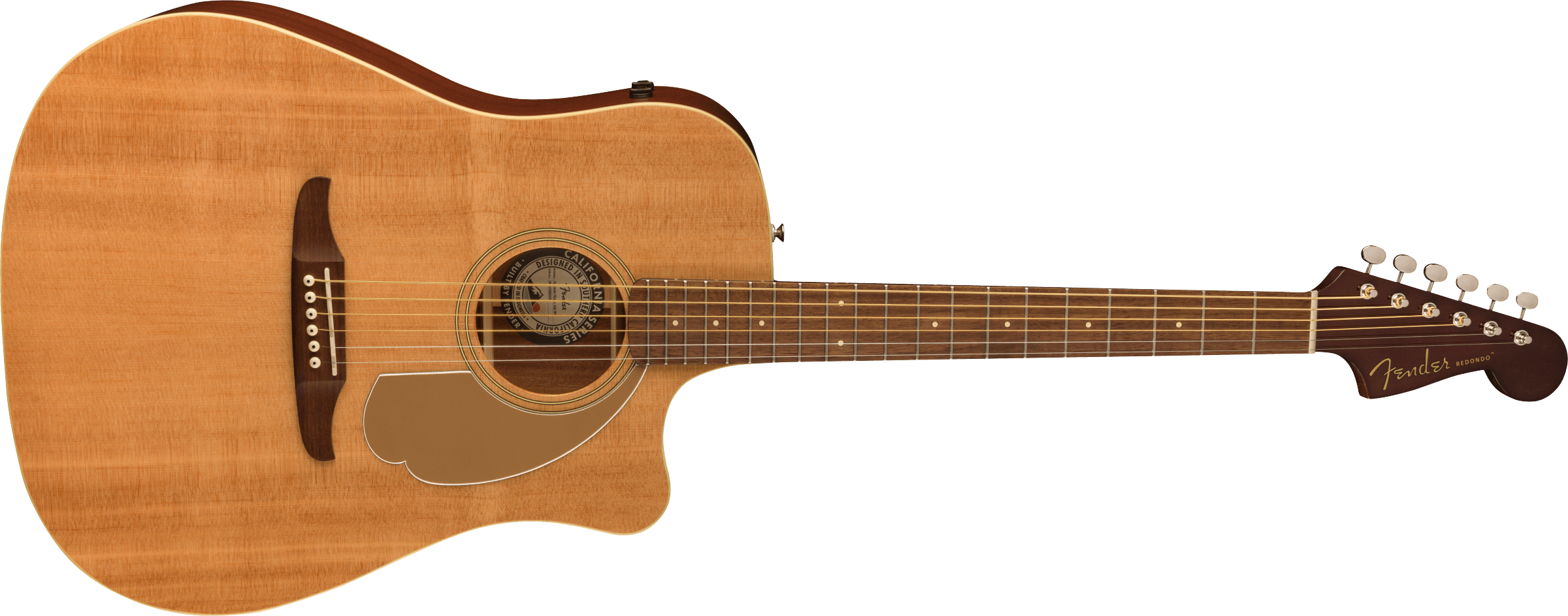 Crafted with an X-braced solid spruce top and sapele back and sides, the dreadnought body of the Redondo Player produces a deep, robust voice with exceptional projection and volume for a wide variety of musical settings. The nato neck is designed with an easy-to-play slim "C"-shaped profile, a 25.5" scale length, and a tilt-back 6-in-line headstock for a distinctive look born from Fender's electric guitar DNA. Other notable details include vintage-style tuning machines for smooth, accurate tuning, a GraphTech® NuBone® nut and saddle for detailed harmonic character. With elegantly integrated controls for a sleek, modern look, the onboard Fishman® Flex preamp system allows faithful reproduction of the guitar's natural sound when plugged into an amplifier or recording device.