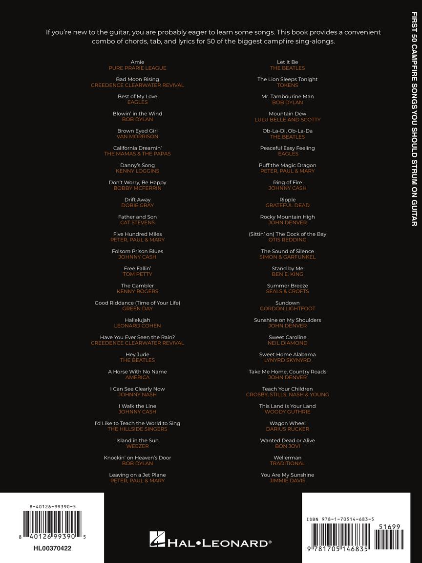 If you're new to the guitar, you are probably eager to learn some songs. This book provides a convenient combo of chords, tab, and lyrics for 50 of the biggest campfire sing-alongs so you can put your new guitar skills to work!