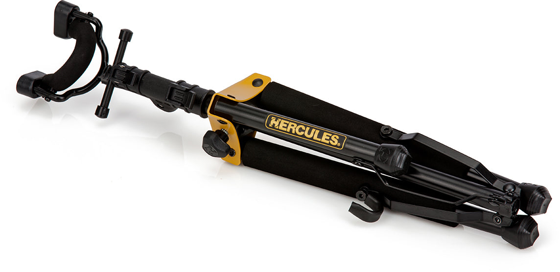 The HERCULES Violin/Viola Stand DS571BB features the Auto Grip System (AGS) yoke that protects the instrument and is compact enough to transport easily.