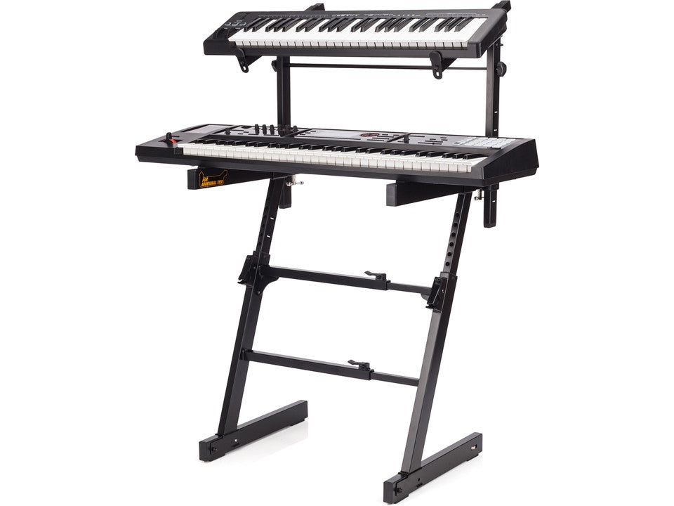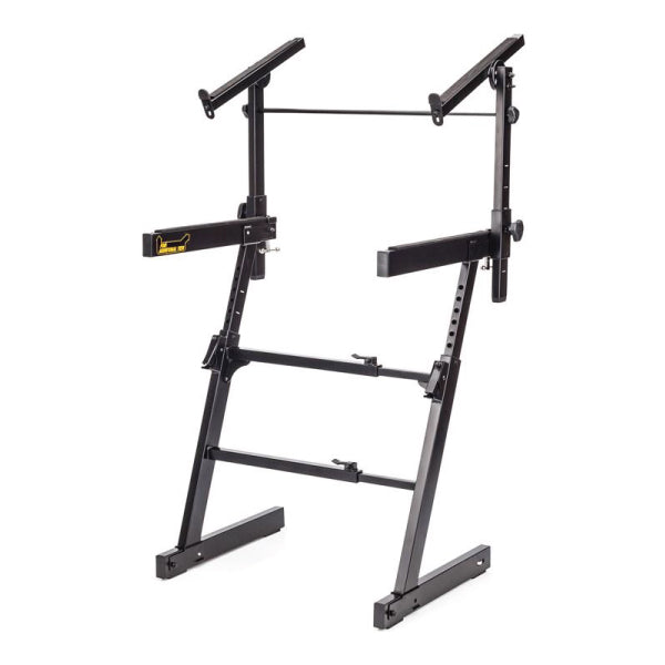 The HERCULES Z-Style Keyboard Stand KS410B is the KS400B with an additional adjustable EZ-LOK Tier for an added keyboard.
