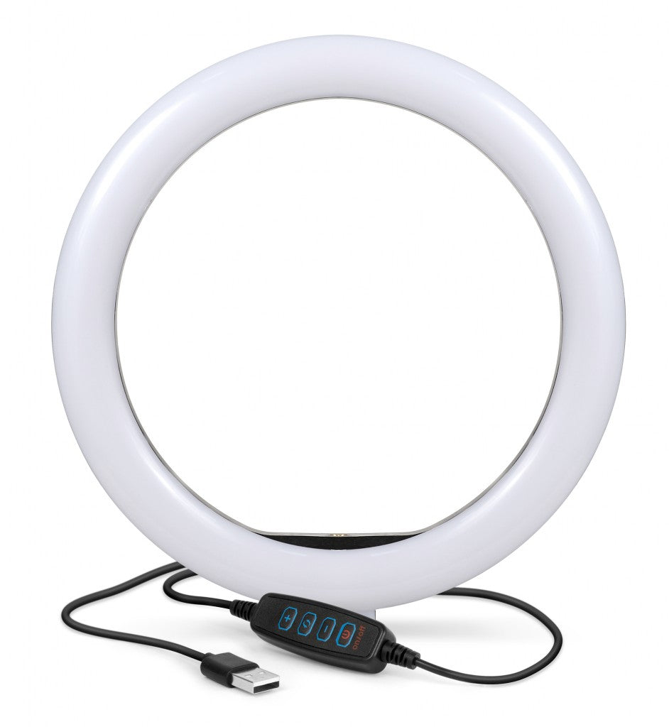 - A 10" LED ring light offers color temp and brightness to create any mood