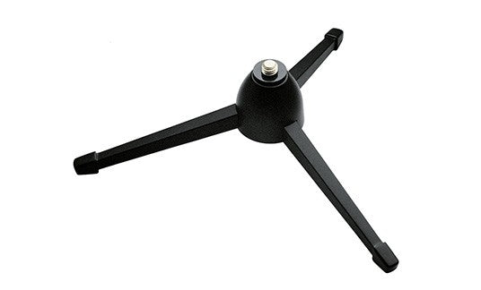 Inexpensive, handy table microphone stand for professional use. Sturdy plastic base with collapsible light-weight plastic legs and 3/8" thread.
