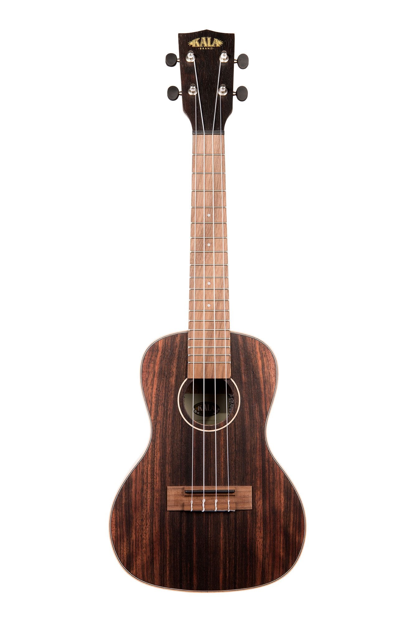The Ebony line has a deep brown body with reddish-brown striping, finished in satin for a natural look. The light colored Maple rosette and binding creates a nice contrast to the Ebony body.