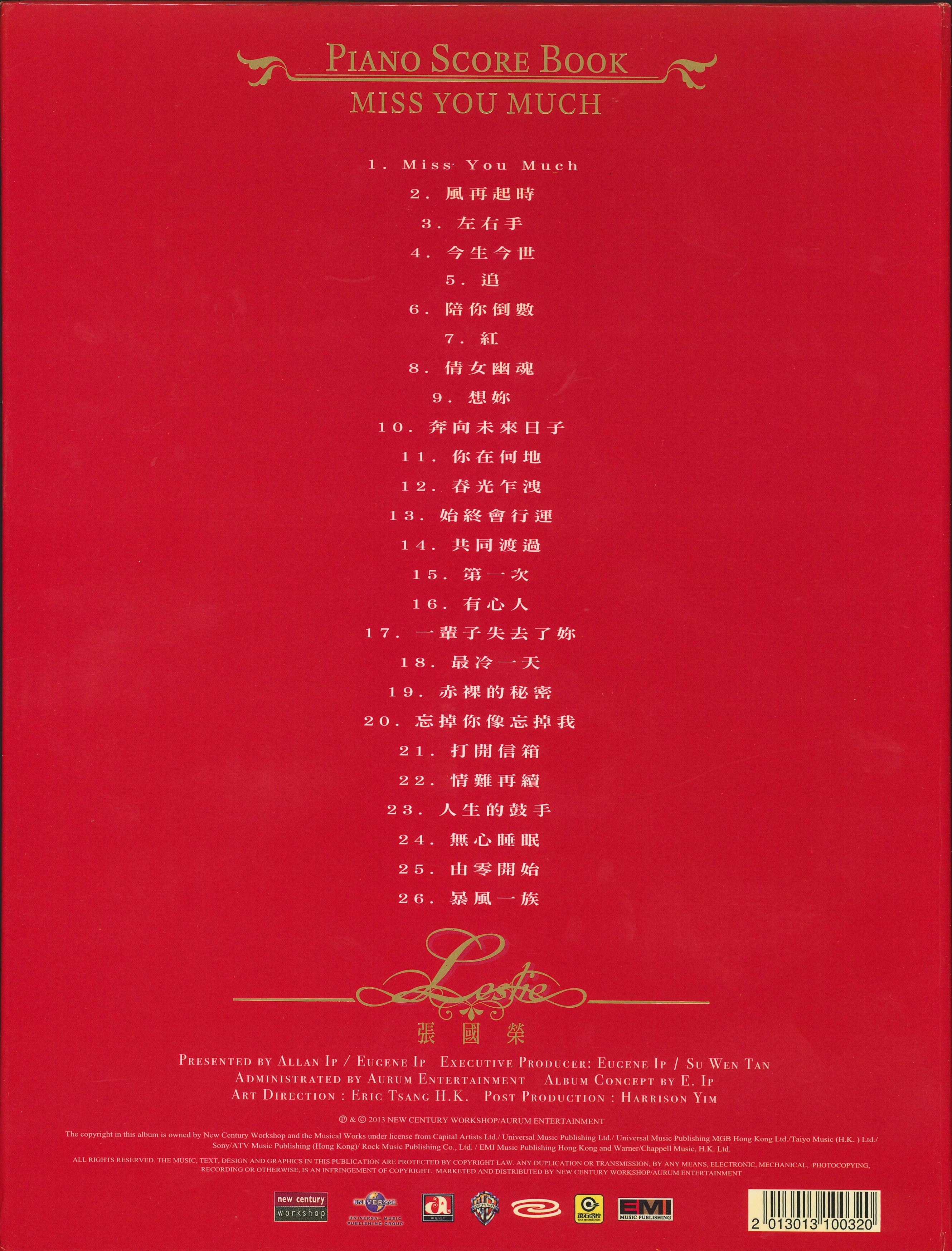 繼續寵愛 Miss You Much 張國榮 Leslie Cheung (鋼琴譜連2 CD)
