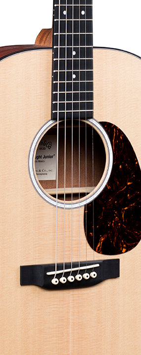 The Dreadnought Junior is designed for players looking for big Dreadnought sound in a slightly smaller body. The newly updated DJr-10E features satin finished sapele back and sides in a rich cherry hue, an option of satin finished Sitka spruce or Sapele top, and a hand-rubbed neck with a high-performance taper. This model also sports a thinner 000 body depth with softer back edges to provide maximum comfort while playing. Every Junior includes a soft gig bag for easy transport.