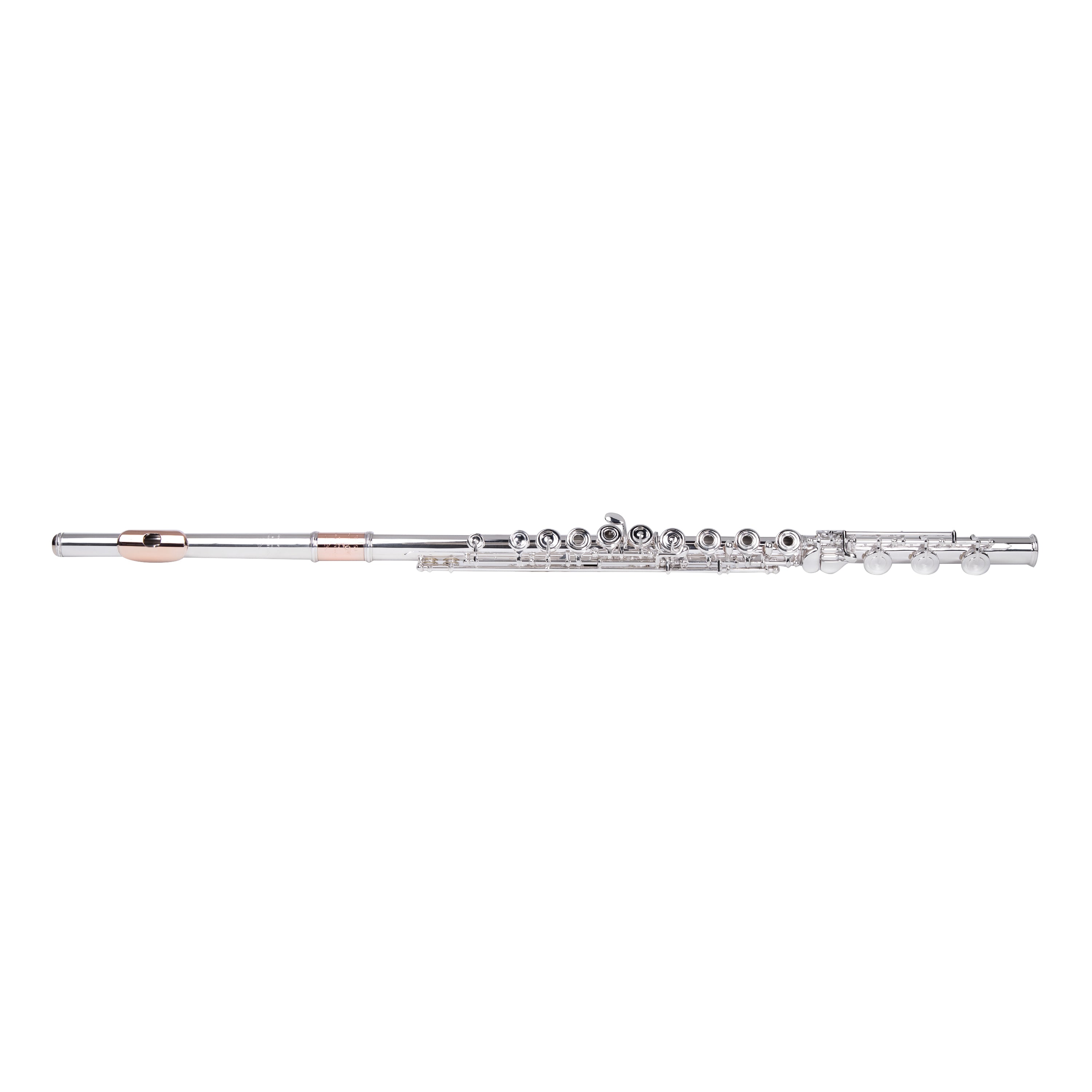 全新 Powell Sonaré 905 長笛具有專業機械按鍵裝置。拔孔長笛具有純銀笛身和笛頭,以及 9K 玫瑰金笛頭冠、唇板以及笛軸。鎳銀機械裝置表面鍍銀並具有法式開孔音鍵、10K 白金彈簧以及 Straubinger Phoenix 音鍵墊。