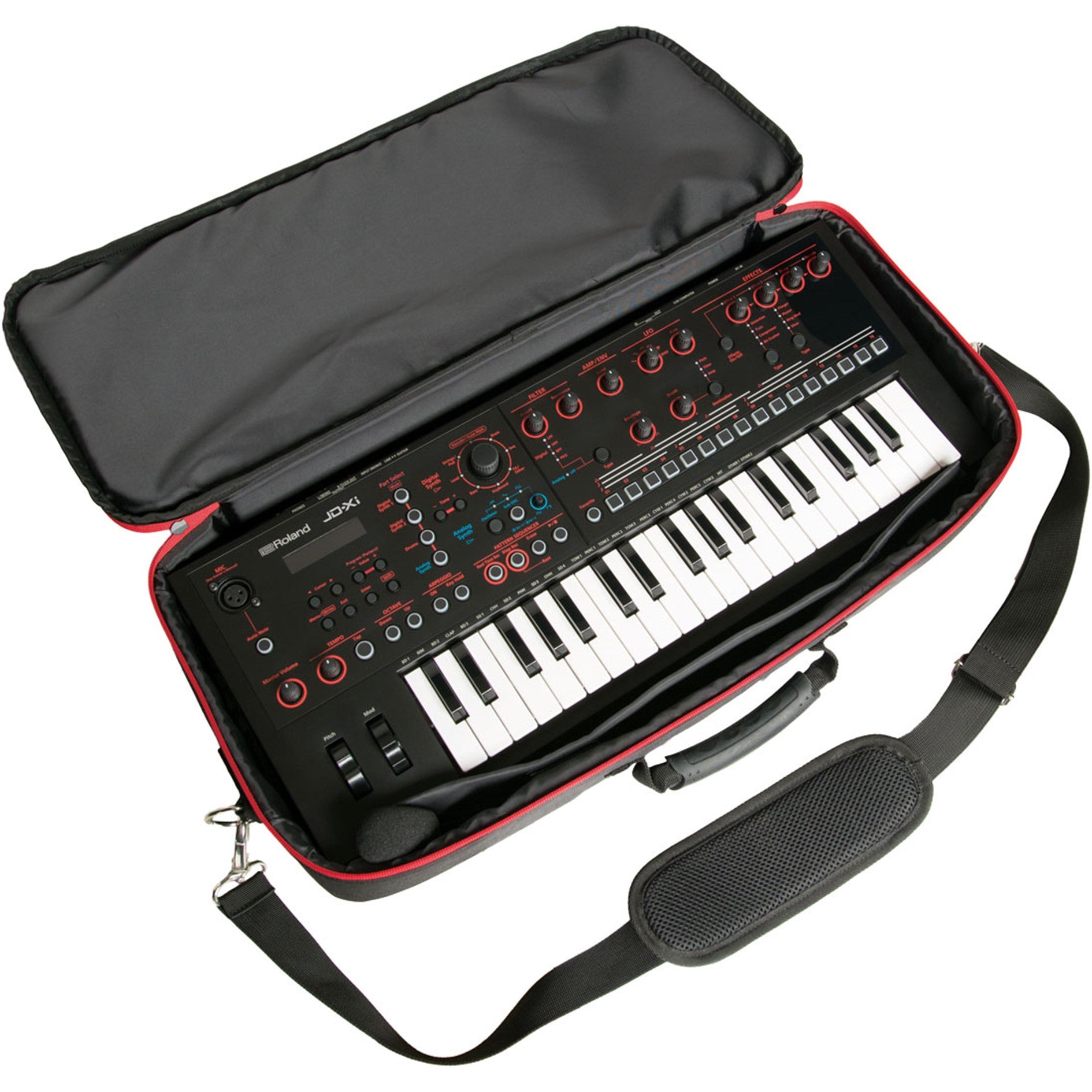 Featuring red and black styling to match the synth, the optional CB-JDXi gig bag is perfect for carrying the JD-Xi everywhere you go. The durable bag provides foam padding and end guards to protect the JD-Xi during everyday travel, plus handy compartments for stowing the gooseneck mic, power supply, and other accessories.
