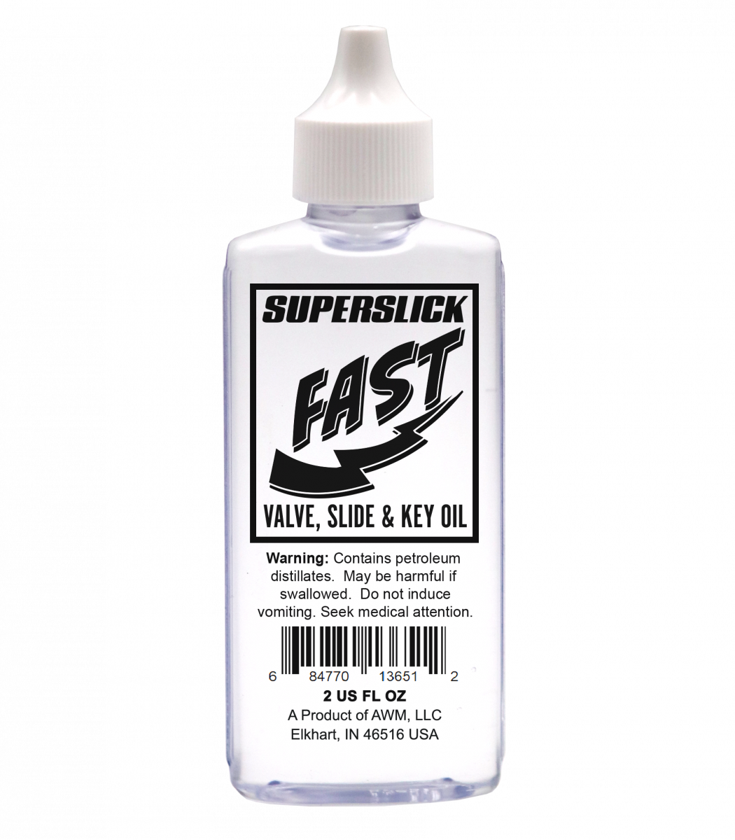 This light viscosity oil from Superslick was developed in partnership with trusted chemists and through rigorous comparative blind testing in the market. It provides long lasting performance for valves, slides and keys. 2 oz.