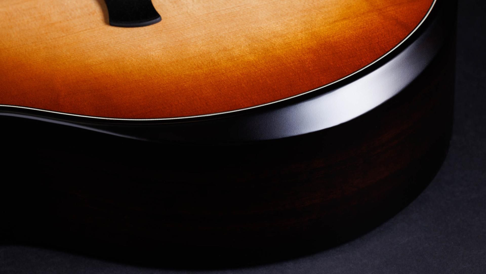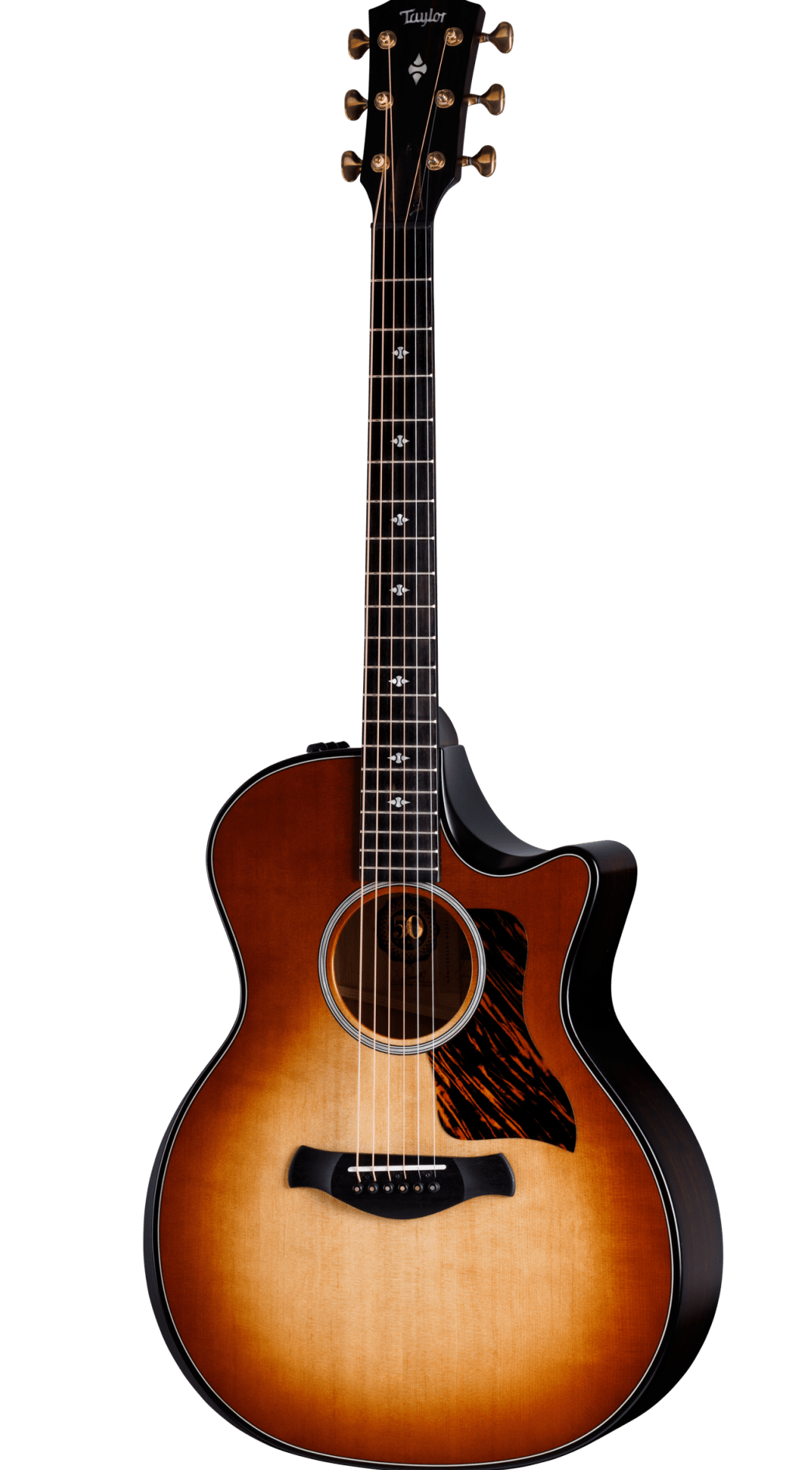 Crafted with hand-friendly design features, an inspiring tonewood pairing and a suite of celebratory appointments, the 50th Anniversary Builder’s Edition 314ce LTD offers exceptional comfort, playability, tone and aesthetics. This ultra-refined version of one of the best-selling U.S.-made acoustics boasts a bevy of comfort-enhancing features: a beveled armrest and cutaway, chamfered body edges and a contoured Curve Wing bridge. Urban Ash back and sides, responsibly sourced from Southern California, produce midrange power and balance akin to high-quality Honduran mahogany. Its solid Sitka spruce top offers a warm, punchy midrange, crisp trebles and impressive low-end presence. The body, which sports a firestripe pickguard, is finished with a vintage-vibed Kona burst and our smooth Silent Satin sheen. Like other 50th Anniversary Collection guitars, this versatile cutaway Grand Auditorium features a commemorative label inside, ebony bridge pins with gold acrylic dots and premium Gotoh 510 antique gold tuners. It comes with ES2 electronics and ships in a Taylor deluxe hardshell case.
