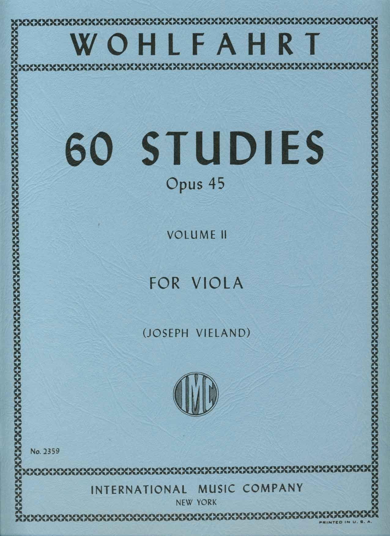 Wohlfahrt's Op. 45 studies have been essentials in the libraries of many great teachers for years. Studies address string crossing, bow-strokes, shifting and finger-patterns. This edition for solo viola is transcribed and edited by Joseph Vieland. Published by the International Music Company. Difficulty: A4/A5 NOTE: This item is for VIOLA, and is Book 2 only, containing etudes 31 through 60. Studies 1 through 30 can be found in Book 1.